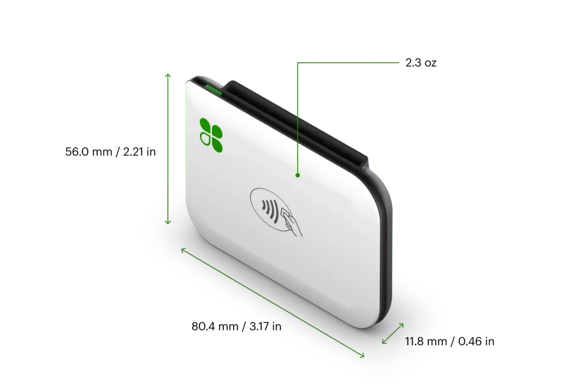 Payments: Accepts chip, dip, and contactless payments including Tap-to-Pay on iPhone, Apple Pay®, Google Pay® and Samsung Pay®.